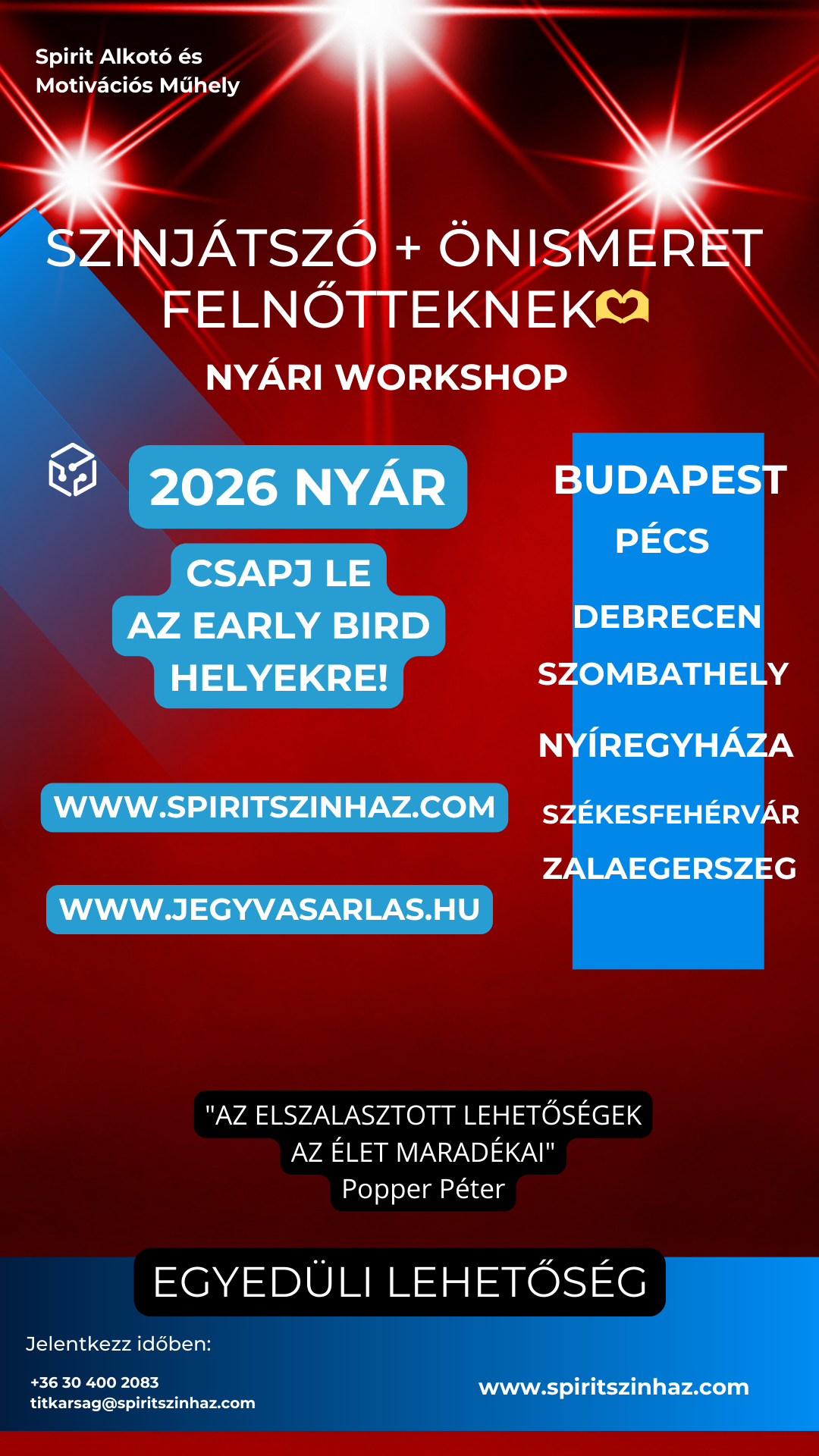 Kérdés esetén: titkarsag@spiritszinhaz. com / +36 30 400-2083